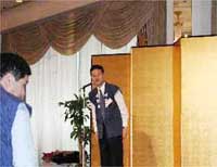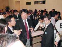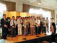 | 支部長挨拶の後、30回生の取り仕切りで、賑々しく行われました。(来年は31回生の当番で、我々32回生は2004年が当番となります) 豊橋から、大村(2組)、南條(4組)の2名で参加してきました。 支部代表として、8組竹内靖典は、午前中の30回生,31回生による準備段階の様子から、我々の参考になるように参加してきました。 |