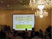 | 総会の議事及び、報告自体は大体20分程度で終わり、しばらく懇談の後、「時習館の現在(いま)」と題して、参加者を12グループに分け(年代まちまち)ゲーム形式のアトラクションが行われました。当然多く正解を出したチームに賞品が贈られます。 (賞品内容は、時習館購買でしか買えない、時習館グッズです。懐かしいけど欲しいか?) |