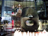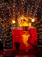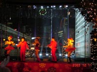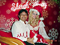 ブロンズと噴水が鎮座する入り口を通り、ポインセチアに挟まれた長いエスカレーターを上るとそこはもう、“パーティー!”入り口でチョコレート、ピカピカ光るバッジ、サンタ帽子、キャンディ等をもらい、金髪ネーサンと記念写真。いきなり心はトキメキマスです。